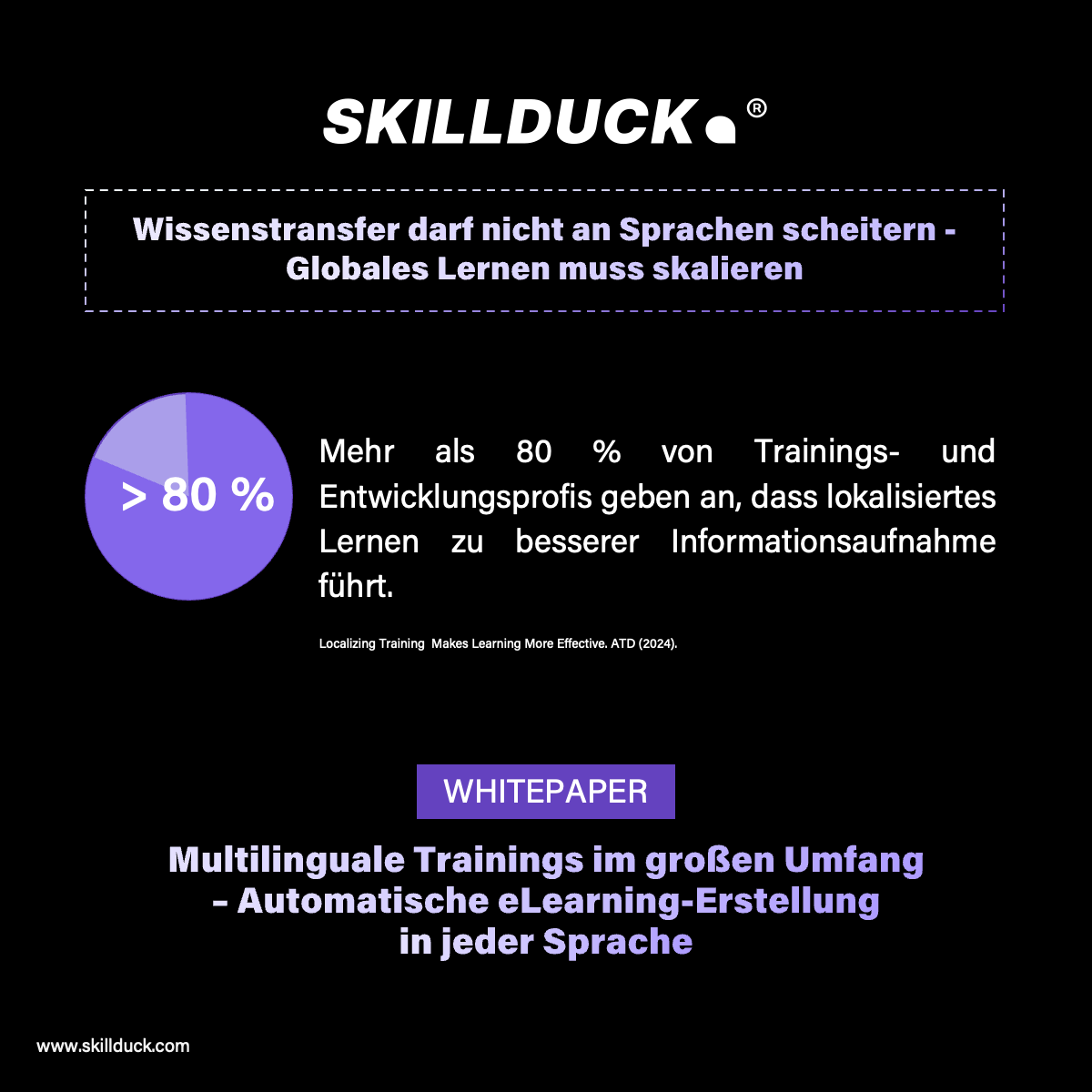 Globale Unternehmen stehen vor der Aufgabe, Trainingsinhalte gleichzeitig schnell, konsistent und in vielen Sprachen bereitzustellen. Internationale Belegschaften, zunehmende regulatorische Anforderungen und kurze Aktualisierungszyklen erhöhen den Druck auf Learning-&-Development-Organisationen erheblich. Gleichzeitig stoßen klassische Übersetzungs- und Lokalisierungsmodelle an strukturelle Grenzen: Sie sind kostenintensiv, schwer skalierbar und führen häufig zu zeitlich versetzten oder inkonsistenten Trainingsständen.